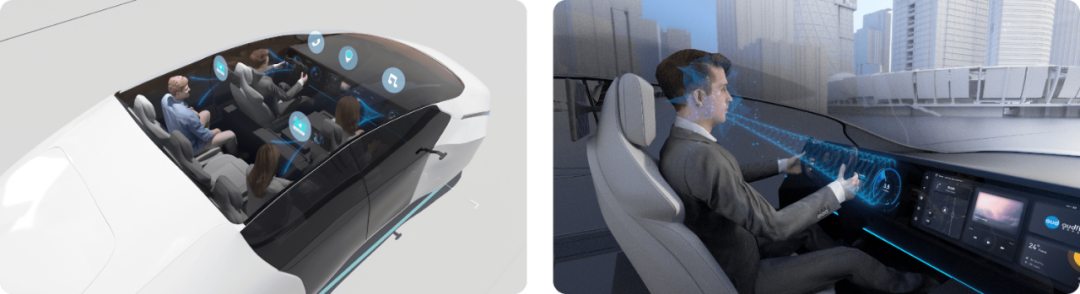 清聽聲學研創(chuàng)的智能座艙Focusound Screen™聲場體驗,巧妙地利用智能座艙中已有的大屏,并利用自研的多音區(qū)Multiple Sound Zone技術(shù),直接通過屏幕給駕駛員創(chuàng)造獨立的專屬聲場,將導航信息、車載電話、提示音等聲音清晰地傳遞給駕駛員而不對其他位置的乘客造成干擾,同時還能精確再現(xiàn)聲音的空間方位。前排及后排乘員也能個性化定義音頻,擁有個人私密音區(qū),解決出行途中通話/會議隱私保護、個性化音頻等需求,幫助用戶更安全、更舒適、更有樂趣地出行。