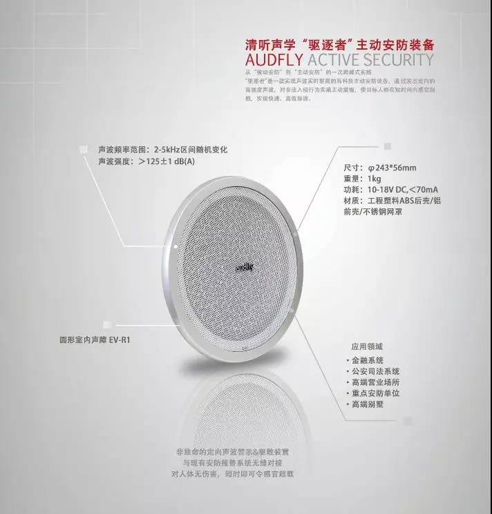 驅(qū)逐者主動(dòng)安防裝置作為科技型聲學(xué)創(chuàng)新安防“武器”,堅(jiān)持“不傷害人體健康”的原則,以高科技手段為銀行安防提供新思路。