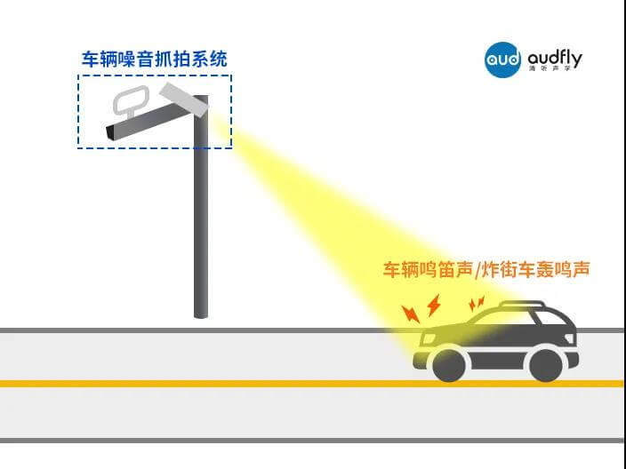 機動車非法鳴笛和非法改裝車轟鳴“炸街”是城市交通噪音治理的兩大難題。清聽聲學快速定位交通噪音治理環節中的技術缺口,將聲源定位技術、聲音成像技術以及核心聲學算法確定到方案中,通過測量一定空間內車輛噪音超標聲波到達傳聲器的信號相位差異,準確定位聲源位置,并實時生成“聲像圖”,實現車輛噪音的可視化。