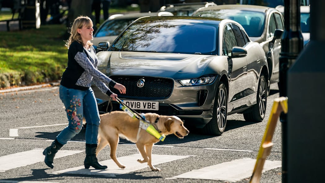 一輛電動(dòng)汽車(Jaguar i-Pace)的駕駛員等待一名帶著導(dǎo)盲犬的婦女穿過(guò)斑馬線。圖片由Flickr提供。